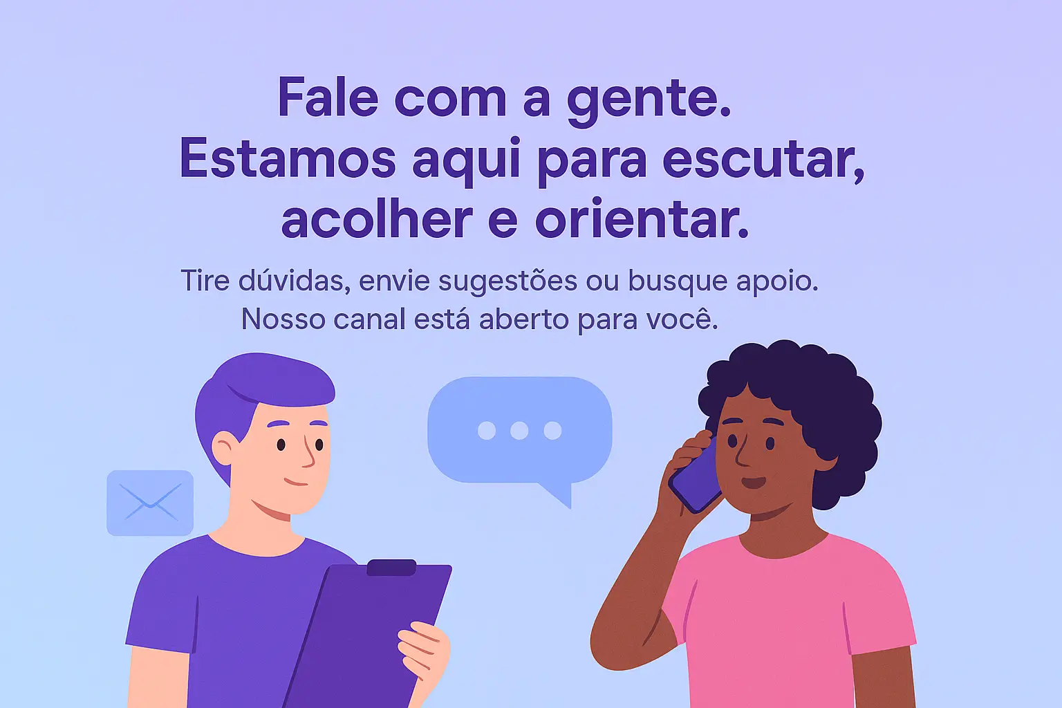 Você pode entrar em contato conosco para tirar dúvidas, sugerir melhorias ou solicitar ajuda com informações e serviços. Respondemos com carinho e atenção.